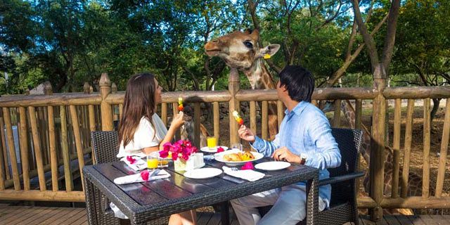 Ever wanted to get very close to animals while enjoying a meal? Then you are at the right place. At Casela World of Adventures you have the opportunity to enjoy a delicious breakfast while watching the giraffes. You will arrive at the park before visitors are allowed making it a very quiet place. Get ready for a perfect morning : At 8:00 in the morning you will enjoy a breakfast consisting of Fresh Mix Juices, Mauritian Tea, Coffee & Chocolate (for kids if any), Traditional Mauritian Allouda, Tamarind Juice & Mineral Water, Selection of Viennoiseries, Pan Cakes & Toppings, *Grilled Chicken Sausages & Turkey Bacon, Beans in Tomato Sauce, Eggs Station / Live Cooking, *Cold Cut Platter & Condiments, Cheese Platter & Grapes, Selection of Bread, Assortment of Jam and Butter, Seasonal Fresh Fruits Platter. It is not just a regular breakfast, in fact, you can feed the curious giraffes from the palm of your hand while indulging yourself with a delicious breakfast prepared by a chef. Giraffes are the tallest animals on earth and because they are so sweet and gentle they are the perfect animals to have your breakfast with.