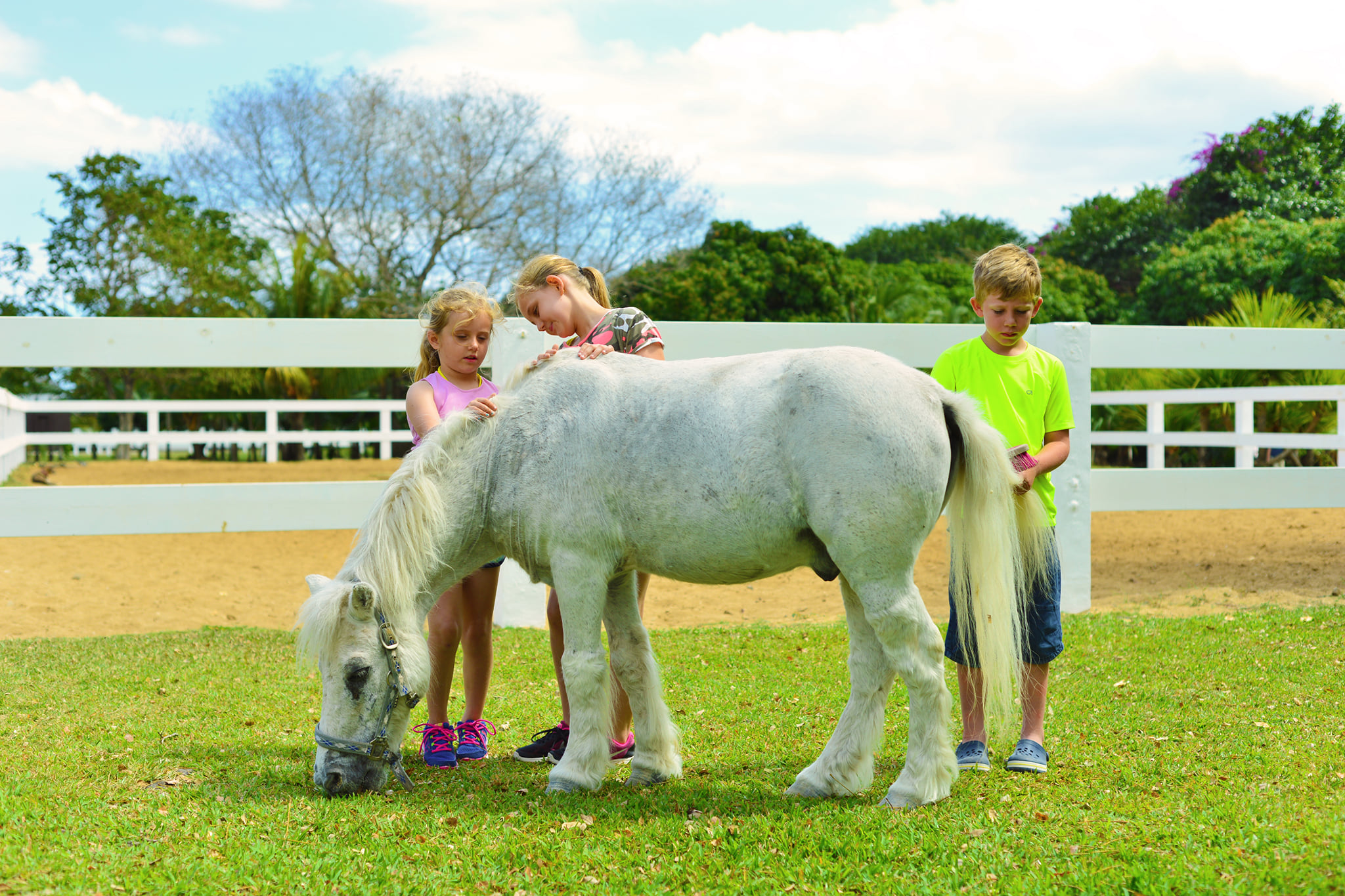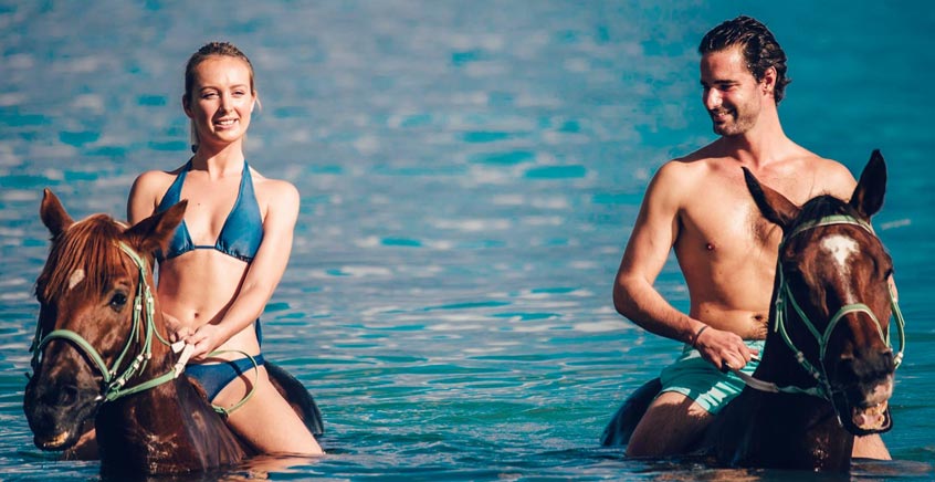 Try horseback riding on the beach, on the estate or around the hotel, private or group rides for all levels, initiation for children with ponies and even swimming with horses for experienced riders*.